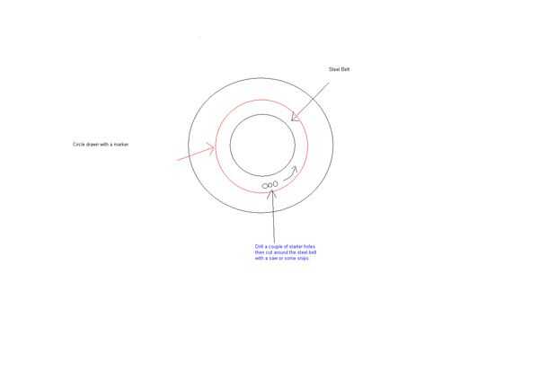 Este paso es muy ruidoso así que usar una protección adecuada. Taladre 4 agujeros con una broca de 1/2 pulgada. Luego cortar 3 lados con una sierra reciprocante. Coloque un pedazo de acero para mantener la tapa cerrada y asegúrelo con un tornillo. He utilizado remaches para sujetar la correa pero se pueden utilizar tornillos y tuercas. También perforé algunos agujeros en la parte superior e inferior del cañón para dejar entrar aire.
