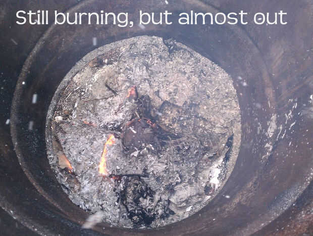 Cuando la quemadura es competir, simplemente rodar el barril a un lado y barrer las cenizas en un recipiente de polvo y repartirlos en su césped o ponerlos en su pila de compost.