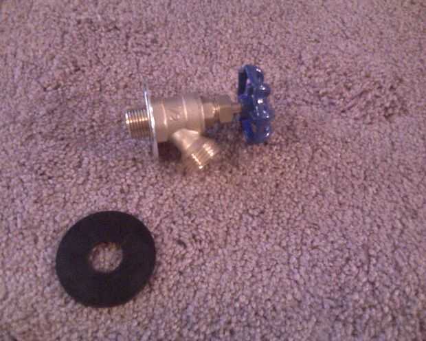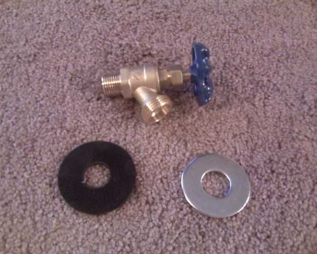 2. Enrosque la arandela de metal en el grifo primero luego la arandela de goma. La arandela de goma debe ser andwiched entre la arandela de metal y el lado de la papelera.
