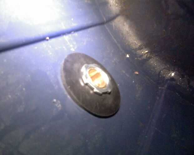 3. Coloque la llave de agua por el agujero, cortar y poner otra arandela de goma en el interior de la papelera.