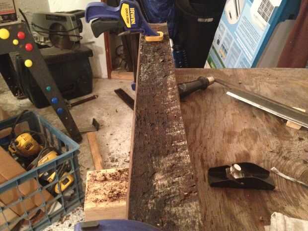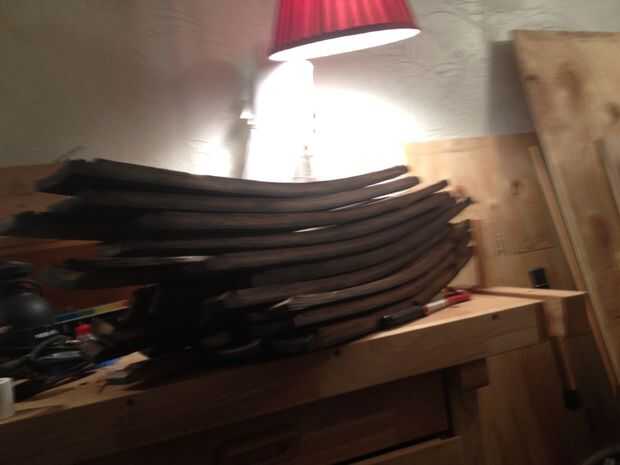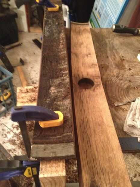 a continuación, tomó el barril entero aparte y organizado los pentagramas.  Arena dentro y fuera de cada uno para quitar la pintura gris y madera dentro de la descomposición. Usé varios tipos de lijadoras, incluyendo una lijadora de varilla, orbitales y la correa para este proceso. Como lija en un pentagrama, vuelven a numerar cada uno en la sección de lijado.  Las imágenes también muestran una comparación lado a lado entre un pentagrama y no arena.  Durante este proceso tomó cuidado sólo ligeramente los extremos de cada lámina para no cambiar la forma de la arena.  La parte superior e inferior del tubo se ajusta perfectamente en cada una de las plantaciones de madera.