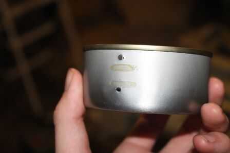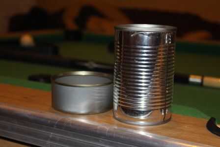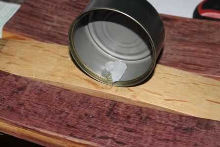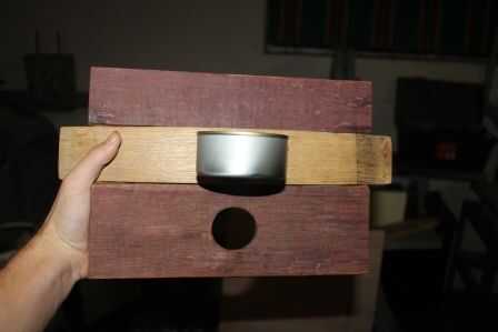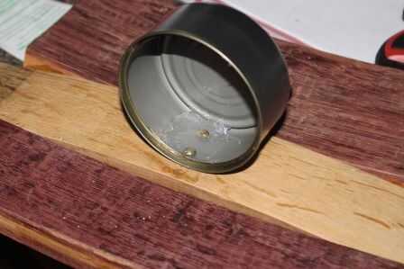 Limpié dos latas, pero decidió utilizar el atún más pequeño puede para este proyecto. Aproximadamente encontró el centro de la misma luz y los orificios perforados en el poder y agujeros correspondientes en la tabla. Entonces fijé la lata a la tabla. Se puede utilizar sólo un tornillo, pero usé dos porque sentía que sería más robusto.