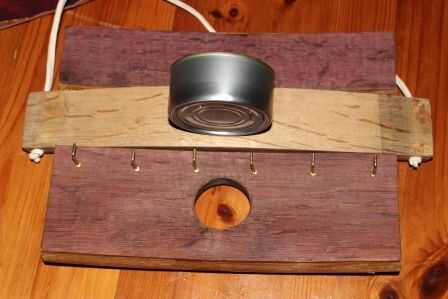 Utilicé un trozo de papel para medir los orificios para los ganchos. Espaciados los ganchos de 5 cm unos de otros. Después de marcar la madera, yo los orificios perforados y atornillar los ganchos.