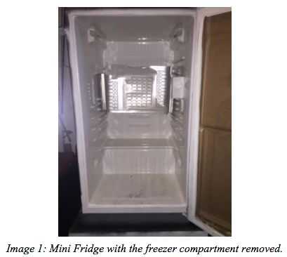 b) si usted no puede acceder a las instrucciones, separar y modificar el congelador estantes según sea necesario. Tener cuidado de no doblar o interrumpir las líneas de refrigerante que no desea que los productos químicos que se escapa a su proyecto. Congeladores de algunas modernas mini neveras no quitan fácilmente, mientras que otros lo hacen. Tener en cuenta al elegir el mini refrigerador para su proyecto.