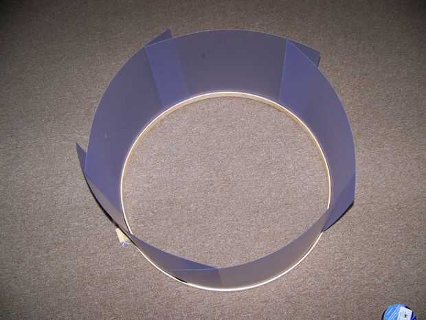 Coloque el aro sobre una superficie plana y comenzar a colocar el plástico entre los anillos internos y externos. Había superpuesto las hojas un poco, pero lo puedes hacer sin embargo te gusta.