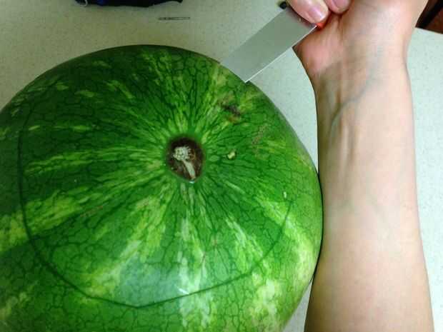 Cortar una tapa de la parte superior del melón. Corta en un ángulo de modo que usted puede poner la tapa nuevamente.