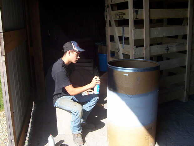 Hacer sus propios contenedores de residuos tóxicos. Este proyecto tomó un par de horas, pero tuvo que completarse en dos días para dar tiempo a la pintura se seque. Todos los materiales están disponibles en la cadena de suministro local de casa.Mater