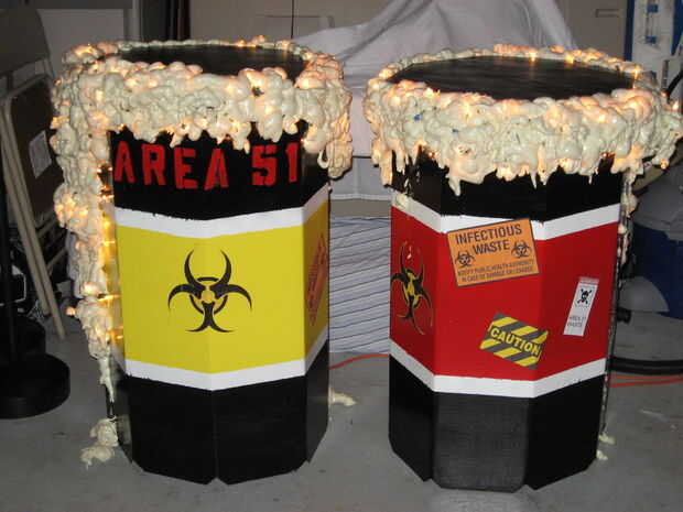 Hacer sus propios contenedores de residuos tóxicos. Este proyecto tomó un par de horas, pero tuvo que completarse en dos días para dar tiempo a la pintura se seque. Todos los materiales están disponibles en la cadena de suministro local de casa.