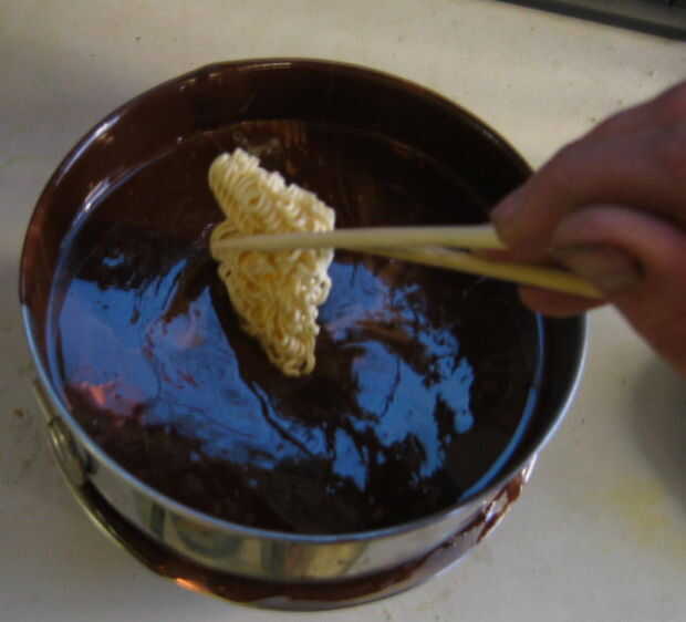 del último concurso de pastel entré fue en 11 de febrero de 1990. Esta es una recreación de ese pastel. Aquí está lo que usted necesita:Mousse de4 1/2 onzas bittersweet chocolate, finamente picado2 cucharadas (1 onza) sin sal mantequilla, cortada en