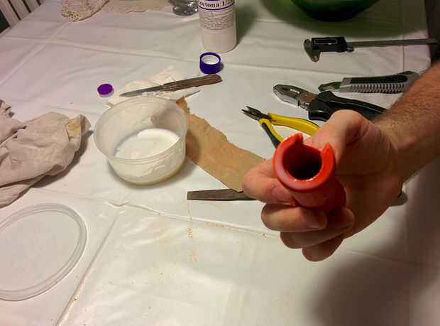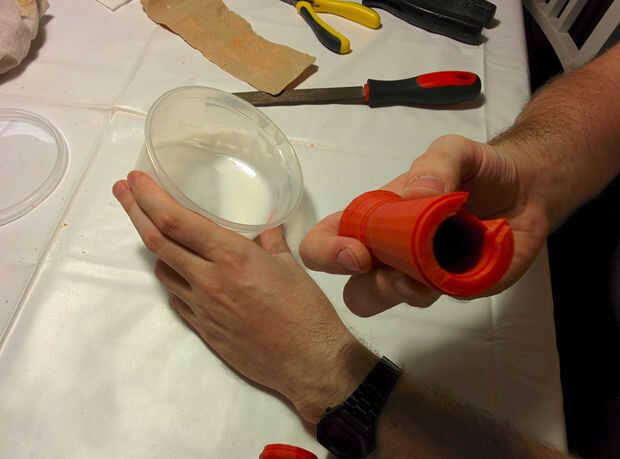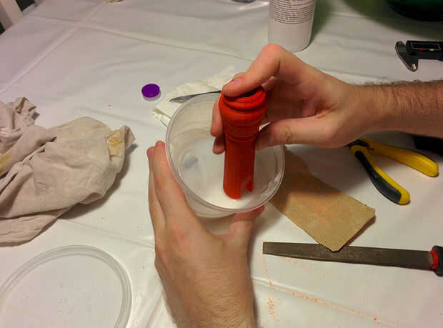 Opcionalmente usted puede soldar con autógena la boquilla al segmento superior con jugo de ABS. Diseñé la boquilla para soldar con autógena juntos, pero encontré que los juegos grabador solo sin la soldadura, y es más fácil de limpiar si se puede quitar la boquilla, y también puede experimentar con modificación en el labio. Pero, si sientes que la articulación está muy floja, solo soldar y olvidarse de ella.
