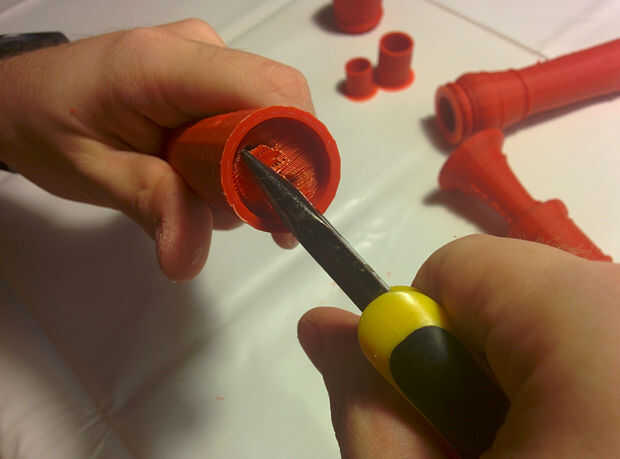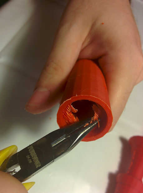 Usted probablemente ha notado que el agujero de las tres piezas principales están obstruidas por una o dos capas de plástico (dependiendo de su máquina de cortar). Las capas del puente existen como soporte. Retirar con las pinzas. No requiere mucho esfuerzo.