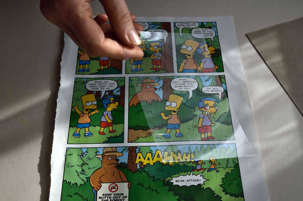Tome su cómic solicitada y la pieza de plástico transparente (yo uso las hojas de película proyector antiguo porque tengo una gran caja que alguien me dio) y colóquelo sobre el cómic en varios lugares a evaluar donde usted cortará su frente y reverso imágenes de y asimismo de su interior las imágenes. Utilice el lápiz o un bolígrafo para marcar las imágenes solicitadas. Entonces, para el frente y las imágenes de contraportada, tomar la regla y marcar un extra mitad pulgada alrededor para doblar los bordes sobre el cartón.