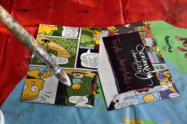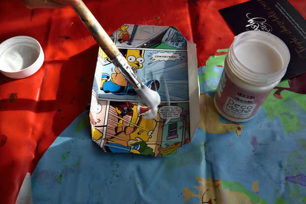 Dejarlos secar y luego pintar más pegamento de decoupage todo las cubiertas para hacerlas más robustas y lisa.