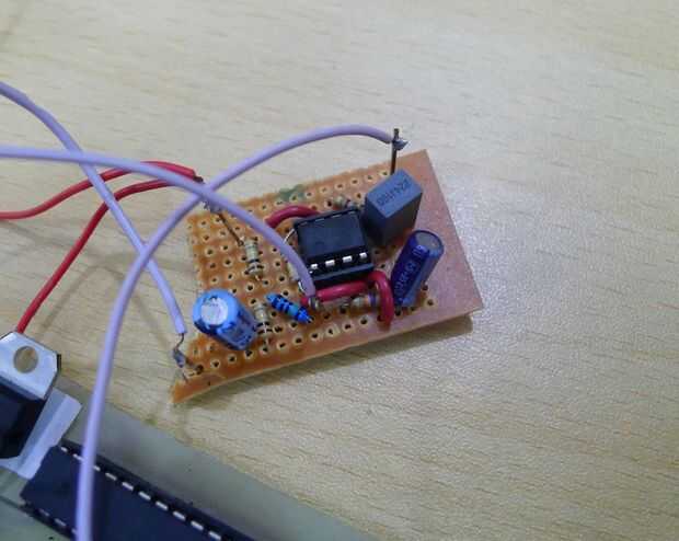 El preamplificador se construirá con un opamp TL071. A sesgar en 2, 5V de la fuente de 5V y establece un aumento de alrededor de 5 – esto es suficiente para aumentar el volumen de la guitarra lo suficiente para mejorar la SNR en la transmisión, pero bastante pequeño para no causar la entrada de audio en el transmisor a clip. Puede intentar omitir el preamplificador pero tendrás mucho más ruido en la señal recibida.