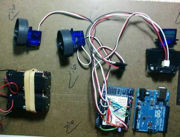 Luego vino la parte difícil: codificación el Arduino para controlar los 3 servos y el sensor de infrarrojos.