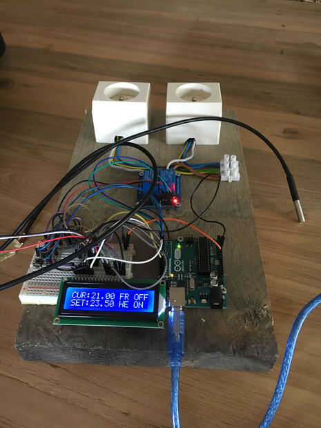La temperatura del sensor se compara con la temperatura que se encuentra. Puede ser de máximo 1 grados centígrados. Si está demasiado frío, se tira un relé para que la fuente de calor se activa. Si está demasiado caliente, se tira un relé para activar la nevera.