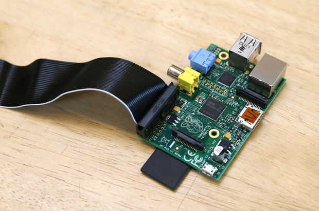 Es fácil misconnect las patillas de encabezado a la Pi. Un extremo del cable de cinta tiene una raya blanca o roja. Conecte el cable para que la franja quede más cercana a la tarjeta SD en el Pi. Conexión del cable a los pines de cabecera en su tablero del circuito puede variar dependiendo de su cableado.