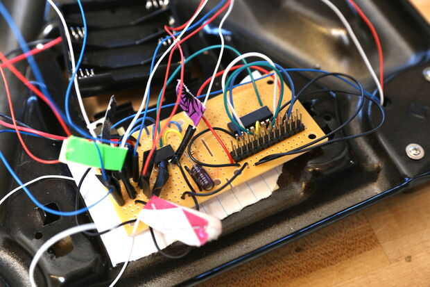 También decidió poner un pequeño trozo de papel debajo del circuito para evitar cualquier cortos.