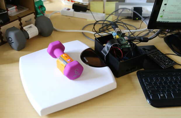 Coloque un peso de ejercicio de 3 lb en el centro de la escala y escriba 'y'. Finalmente cuando se le solicite con