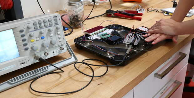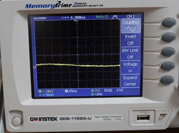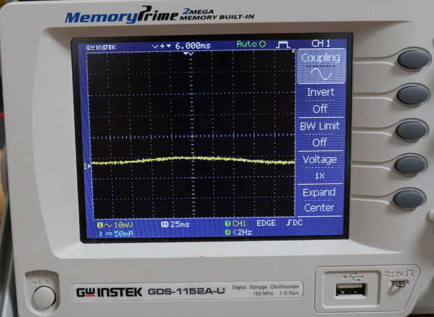 Podemos ver esto por nosotros mismos con una escala digital. Separar una de las galgas de 3 cables de la báscula de baño. Conecte su cable rojo al poder, alambre azul o negro de tierra y cable blanco para el osciloscopio. Tiene un amigo "bomba" de la galga extensométrica o aplicar peso a él encendido y apagado. Pareja de AC el osciloscopio y reloj mientras que el voltaje de la salida del indicador de la mancha cambia con fuerza.