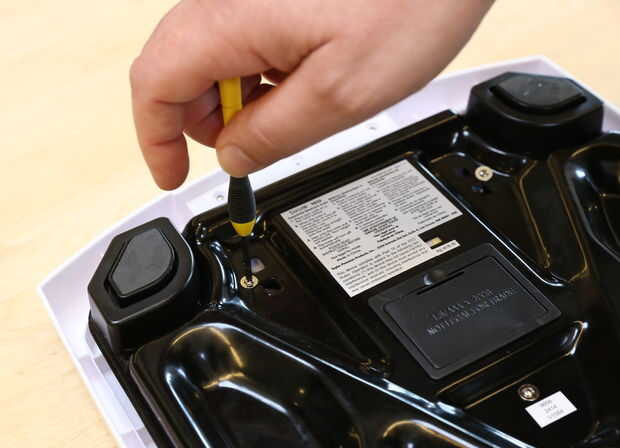 Quite los tornillos en la parte inferior de la escala. Tire caso superior de la escala.