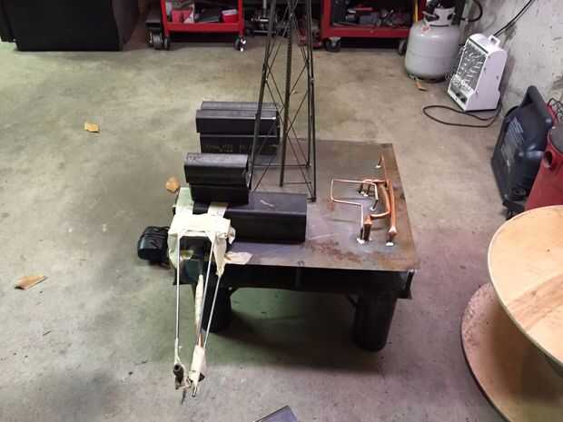 Una vez que las partes importantes de hecho pueden empezar a burlarse de las piezas, para asegurarse de que todo lo ven bien. Ahora usted soldar todas las piezas juntas para que pueda obtener un seguro, mangos de estudio. La plataforma debería verse como la segunda imagen en este paso. (no hay partes, no hay helipuerto) Usted puede utilizar disco de rueda de la aleta en la amoladora para alisar las soldaduras. Dar los mangos una mirada limpia. La molienda es totalmente opcional y hasta si están orgullosos de las soldaduras y desea verlos, entonces dejas. Una vez que haya finalizado entonces puede ir a la etapa final.