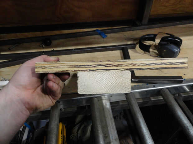 5) para hacer los agujeros en la placa de guía, es útil hacer una rápida plantilla (fotografía abajo). Necesita las dos piezas de madera y los tornillos. Perfore un orificio de 3/8" a 1" de un lado de la madera contrachapada. Debe ser de centro, en relación con el lado que usted elija. Luego perfore un agujero de 3/4" su orificio de 3/8" sobre a mitad de camino a través de la madera contrachapada. Coloque el dos por cuatro en el punto centro de la madera contrachapada y sujete con los tornillos de madera. Asegúrese de que el orificio de 3/4" está en el lado que fije el 2 x 4. Introduzca uno de sus pernos de 2 1/4" en el orificio de 3/4". El agujero hace un lugar agradable para la cabeza del perno descansar, mientras que el resto de los sobresale el "top". Asegure con una tuerca y una arandela.