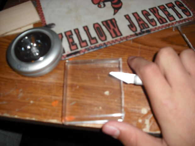 Corte la parte superior a la mitad con la dremel y alise los bordes con el exacto.