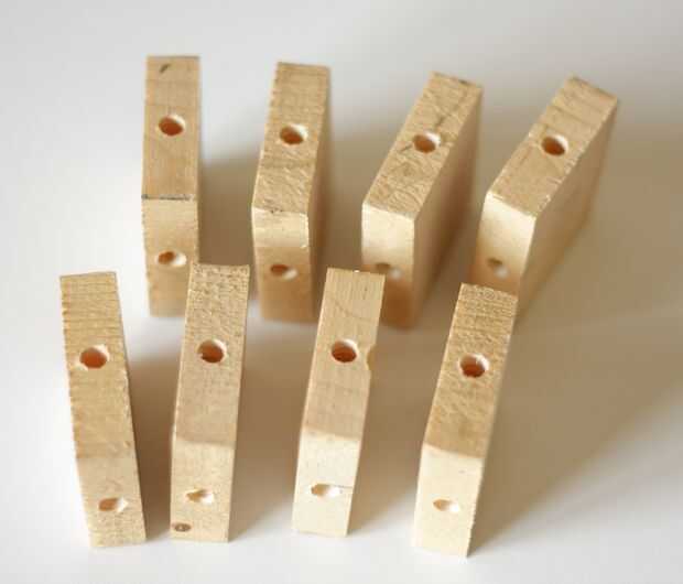 Ahora usted puede perforar, prestar atención al hacer cualquier agujero 10 mm de profundidad, esto simplificará centrar los cilindros cuando se pegue. Ya que te pegue alguna pieza, los agujeros podrían ser un poco más anchos que los cilindros, por lo que tienes no empujar demasiado apretado en el lugar.