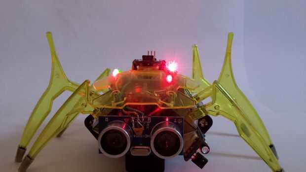 Para construir una araña robótica programable basada en escarabajo Hexbug, equipado con el siguiente conjunto de sensores: