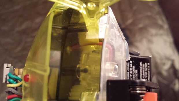 Usted necesitará un par de agujeros de 3 mm en ambos lados de la parte inferior del escarabajo para dejar los cables de la AAA a través de la perforación. Escoger un lugar que está entre y de los engranajes dentro y muy cuidadosamente no para estropear el mecanismo de perforación.