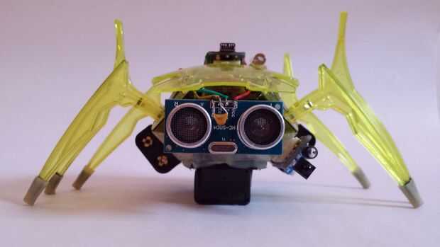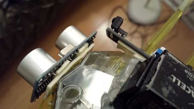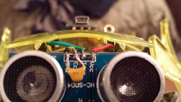 Opté por instalar el sensor de ultrasonidos en el frente del escarabajo con la cinta de doble cara (capas múltiples para equilibrar los microchips).