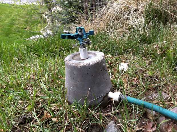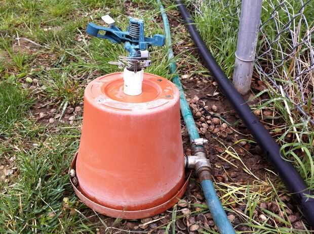 I odio riego mi jardín y no quería caer a miles en un sistema de riego permanente. Por lo tanto, se me ocurrió con esta solución usando aspersores de jardín regulares y grifería temporizadores.Uso de aspersores de césped regular y hacer custom-longit