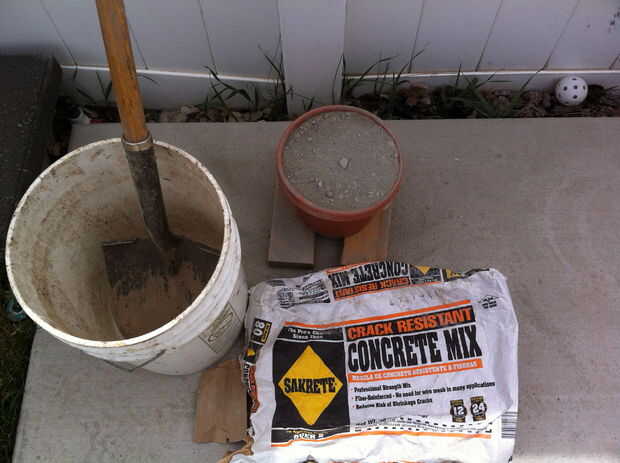 10 - verter el concreto a la olla y deje que se ponga sobre una superficie nivelada.