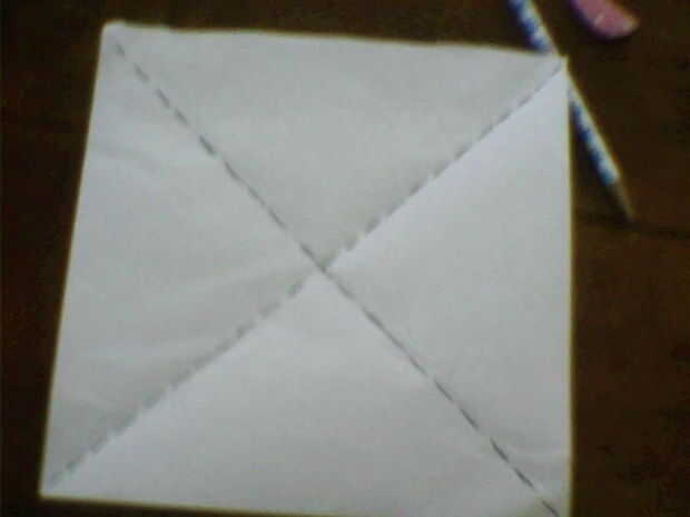 doble una hoja de papel cuadrada diagonal ambas maneras.