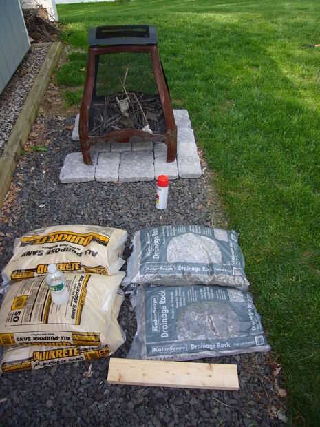 Quería una base de piedra de 3 pulgadas por 3 X 3 X 0.25 = 2,25 pies cúbicos
