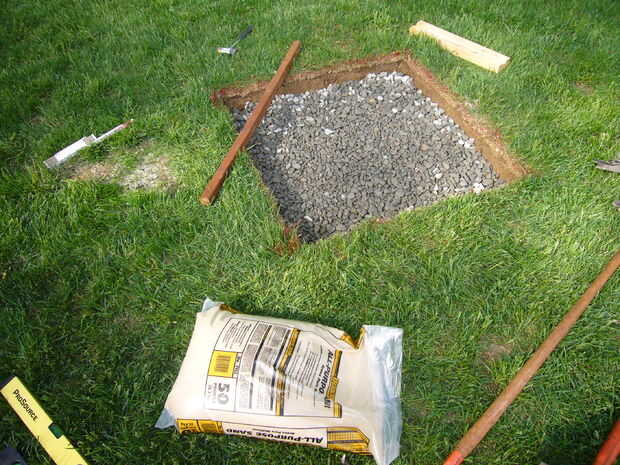 Otra vez Asegúrese de compactar la piedra hacia abajo con su manipulación o en mi caso he utilizado un bloque de madera y había martillado con el mazo sobre toda el área de la base.