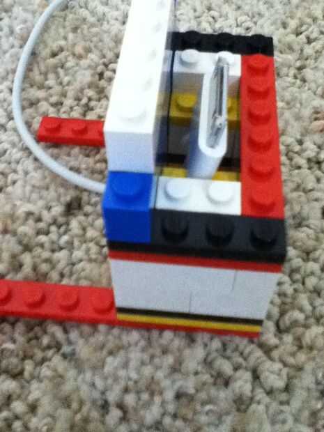 esta es mi entrada en el desafío de K'nex 1Es un base dock universal de Ipod, que trabaja con todos los modelos excepto el shuffle(s).Es pequeño, fácil de construir y funciona con más cables de sincronización.También viene con garantía de Bartboys li