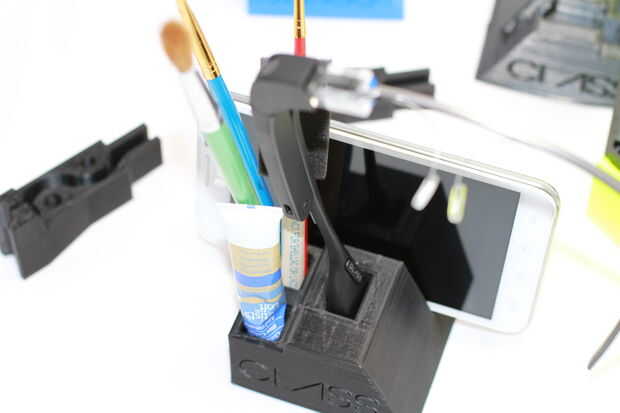 Lado ponderado de la unidad de vidrio está encajada en ángulo apertura base, entonces el teclado es abombado por torre vertical manteniendo su inversión exclusiva en una lista para agarrar y cuidada presentación pantalla. La perca de la torre ha sido canalizada por lo que se puede insertar el cable USB original o del mercado de accesorios para acoplados de carga y transferencia de datos. Una vez que usted inserte el adaptador USB en vaso mientras que el acoplado se puede colgar vidrio boca abajo desde la base y no movió una solución docking muy sólido y seguro! Esta base ha sido diseñada para acoplamiento reverso por lo que dependiendo de su preferencia puede invertir su dirección para satisfacer sus necesidades. Este muelle también incluye una ranura grande diseñada para sostener los lentes adicionales y sus casos. Puede también utilizar esta base en modo de"dique seco" sin la torre y muelle todavía su cristal como 2 bolígrafos y otros accesorios/Consumibles escritorio en las ranuras de tratar. He trabajado y trabajado a este diseño en mi impresora 3D para conseguirlo abajo a tan poco plástico como sea posible para reducir el costo/tiempo cuando ordenar e impresión. ¡ Han estado usando esta base y variantes anteriores en casa y trabajo hace 3 semanas y han tenido problemas con el rendimiento ni daño de cuerpo de vidrio/marcas! Esta última revisión tiene un botón de vientre hueco para ahorros de costos de producción pero también funciona como un puerto para agregar peso internamente para una experiencia de conexión más sólida!