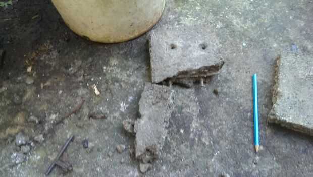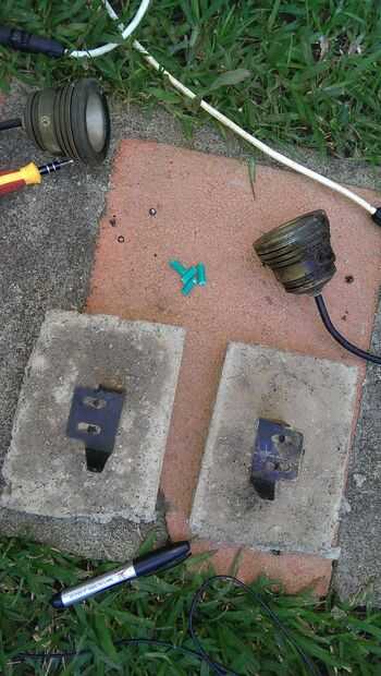 Después de finalmente era tiempo para poner las losas para usar donde agregar mis luces y bombas a ellos. Primero elija la bomba y marque en la losa donde perforar los agujeros y luego inserte los tacos. Después de taladrar los agujeros sorpresa!!!!!! la losa agrietada justo en la mitad revelando la varilla y en este punto me di cuenta de lo mal que hice la mezcla y que no siquiera resisten la presión. Porque estos se utilizarían para fines y uso personal donde me fui adelante y continúan otras losas de Marque y perfore ellos y ninguno de ellos se rompió mala pero rompieron aún en los bordes como se ve en las fotos "disculpen fotos borrosas" pero estaban bien fijadas y podría llevar la carga.