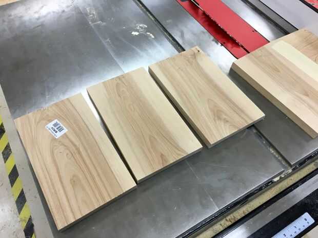 Corte cuatro piezas de madera dura 3/4" a 4" de ancho por 10" de largo. En cada marca el borde superior de la cara externa de la pieza.