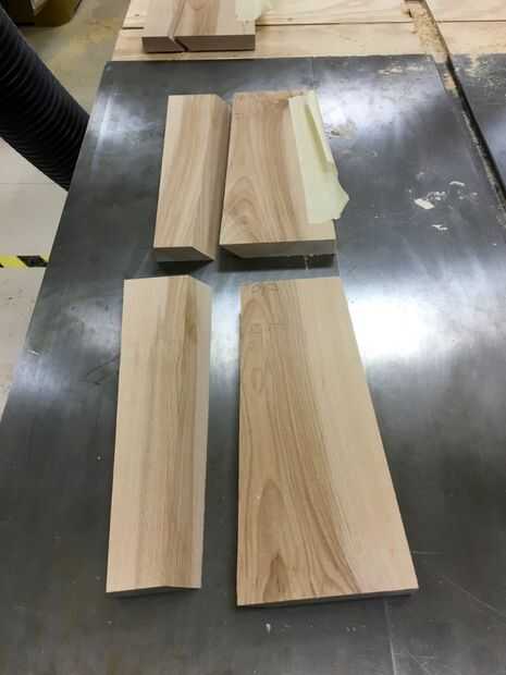 En una de las piezas de madera dura, pone la forma del lado de la base de la lámpara. Marcar las líneas de corte de 45 grados en los bordes superior e inferior.