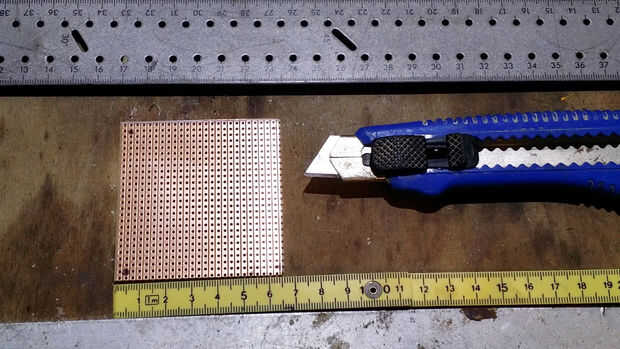 1. preparar la placa perforada cortando 25 x 26 los orificios y perfore 4 orificios (ø 4mm) para la fijación.
