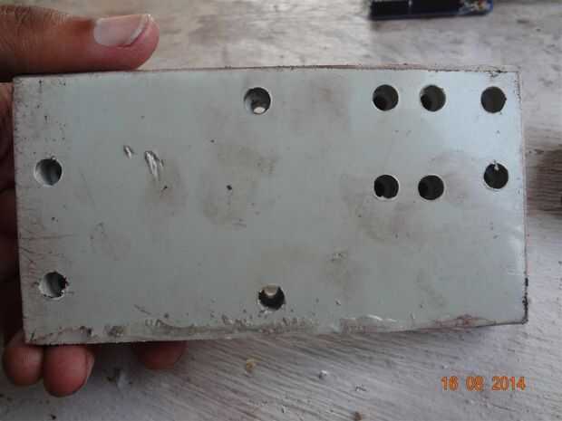 Ya que la atadura de cables o los tornillos no deben salir en la parte inferior de la placa, ensanchar el agujero en el sitio de la parte inferior de la placa