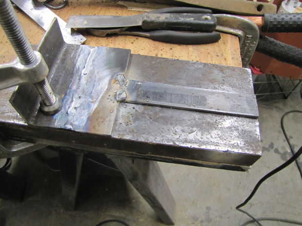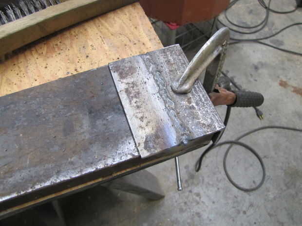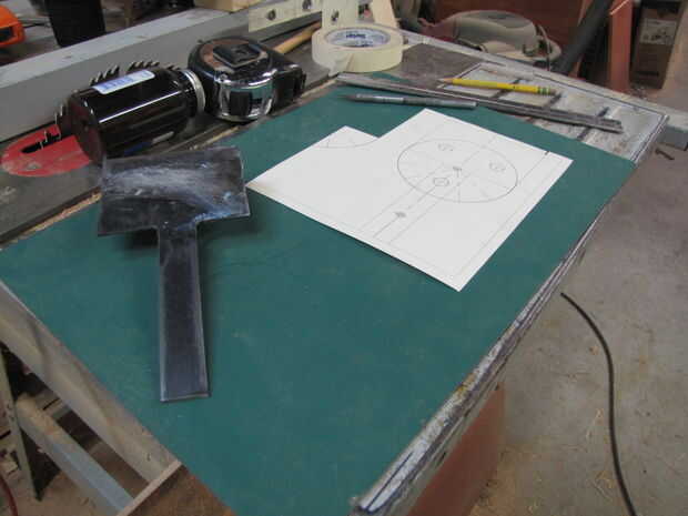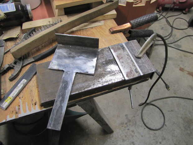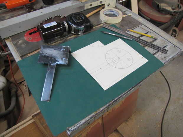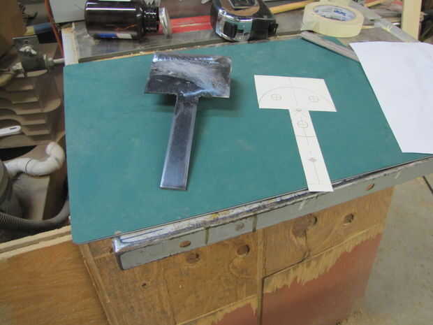 Extendió la pierna horizontal del ángulo 1½" por la soldadura de ranura plana stock y molerlo suave. Luego imprime una plantilla de la disposición del agujero, adherido al soporte y los agujeros perforados: (3) ½" agujeros para la elevación tornillo y guía de las barras y (1) ¼" agujero para que un tornillo sujetar el soporte a la cubierta superior. También perforé (2) ¼" orificios en la pierna vertical para sujetar el soporte a la cubierta posterior. Soldado con autógena ¼" tuercas hexagonales de la superficie del lado inferior/interior en las ubicaciones de los tornillos.