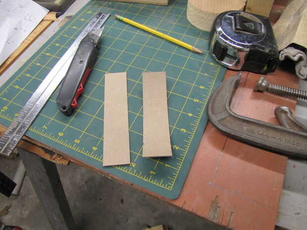 Más adelante en el proceso de construcción, me di cuenta de la necesidad de redondear las esquinas interiores de los conjuntos de pivote. Esto fue permitir que más material permanecen en la tapa superior y reducir el estrés en las esquinas reentrantes de las muescas. Fotográficamente no documentar este proceso de redondeo. I imprimir un patrón en cartulina, monta el patrón en cartulina, cortar con un cuchillo y trazó la curva en cada Asamblea. Luego utilicé una lijadora de banda para redondear en las esquinas.