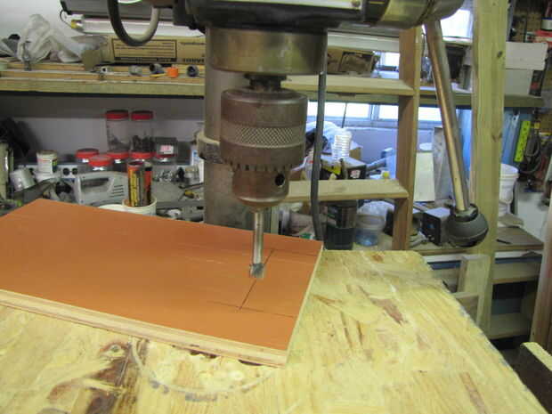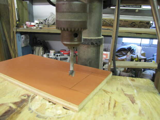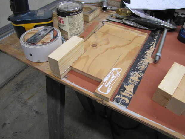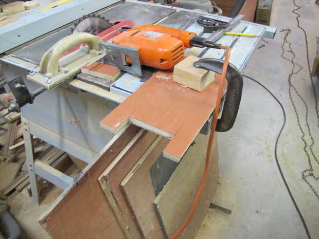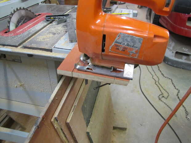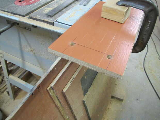 Hice los soportes de pivote de 2-por chatarra que liso, arrancó a la anchura aproximada y cortada substancialmente libres de nudo. Pegué un trozo a cada lado de las ranuras en la madera contrachapada. Para las facetas típicas, es decir, los 5 que no empalman con la cubierta trasera, pegan todos los bloques en su lugar, permitidos que se sequen y entonces cuidadosamente un bisel de 15 grados cortar cada borde. En un esfuerzo por conseguir un apretado, boquete-libre ajuste, corté cada uno para adaptarse a los bordes de la madera contrachapada de base lo más cerca posible, ya que estos bordes no eran perfectamente idénticos.