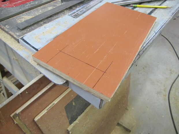 Empecé a ripear material ligeramente más ancha que las facetas acabadas, borde biselado y luego cortarlos a la longitud. Trazado las muescas con un juego adicional de 1/32" en cada lado y lo suficientemente profundo para permitir el montaje de pivote superior gire sin atascamiento. He perforado las esquinas, cortar la muesca con una sierra de sable y lija suave en los bordes de la ranura.