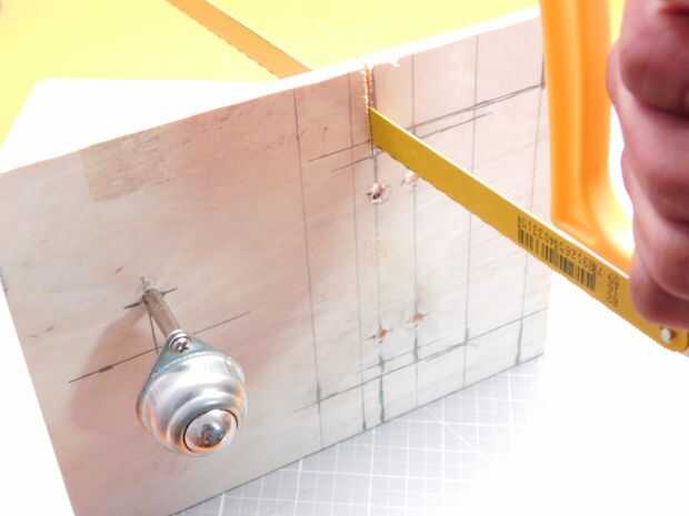 Ahora viene la parte complicada. Tienes que cortar ahora las piezas rectangulares de madera para las ruedas de ajuste en el motor y se mueven libremente. Comience por cortar a lo largo de la anchura utilizando una sierra para metales. Ahora no se puede cortar el sobrante con por lo que probablemente tendrá una placa de corte para ello.