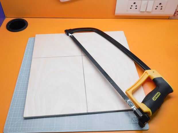 Aquí empezamos por la primera corte de la madera contrachapada de base a un tamaño apropiado. Si ya tienes un tablero de tamaño normal, enseguida puede omitir este paso. Ahora cuando pensando en el tamaño correcto, decida si desea la base rectangular o en forma de cuadrado. De forma cuadrada, debería ser bastante fácil como la relación entre longitud y anchura será 1:1. Sin embargo para que el robot ver mejor, usted siempre debe ir hacia una base rectangular.